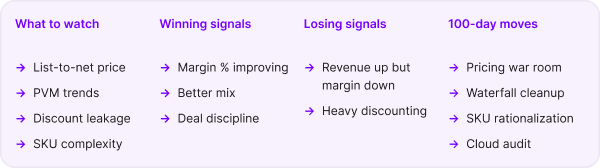 Run price-volume-mix analysis. Review pricing. Audit cloud and infrastructure costs. Improve gross margin.
