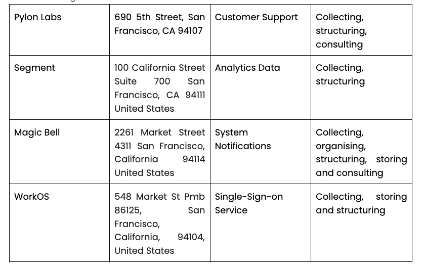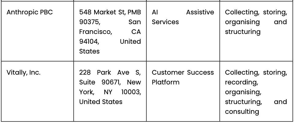 1.5.2 Appendix B contains the Data Controllers conditions for the Data Processors use of sub-processors and a list of sub processors authorised by the Data Controller.