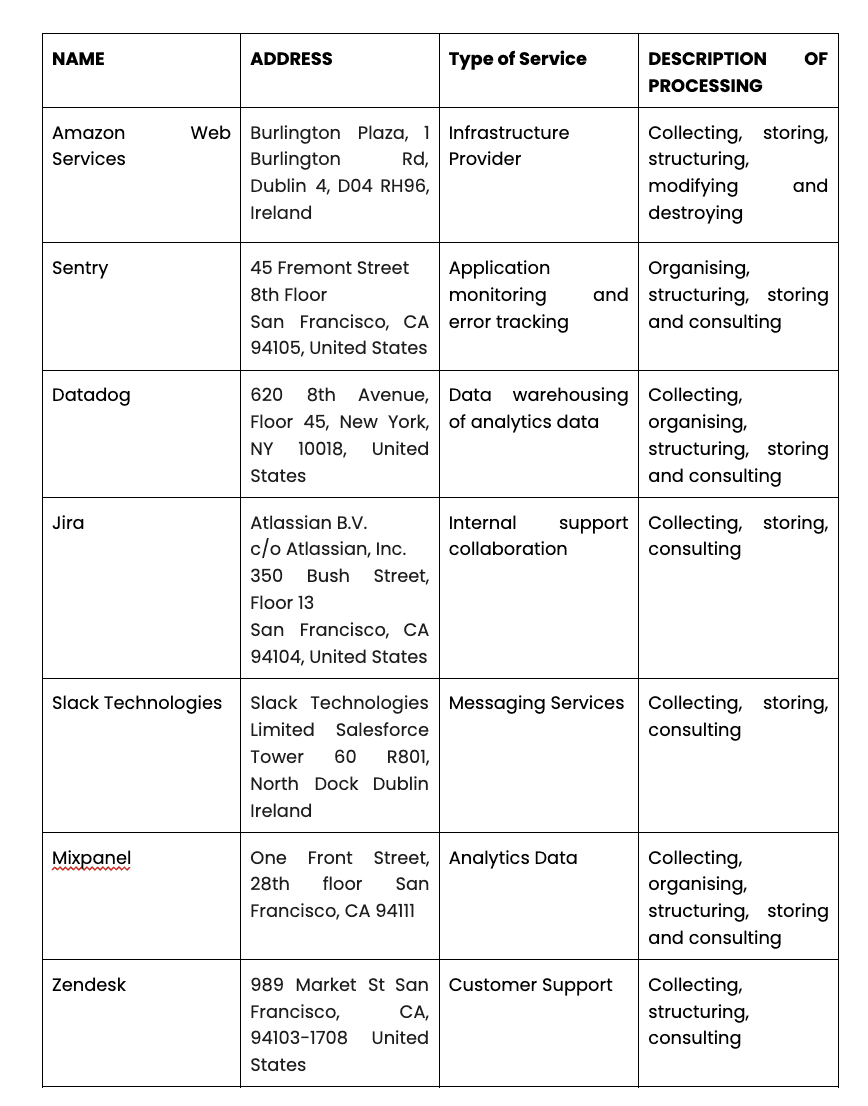 1.5.1 Appendix A contains details about the processing of personal data, including the purpose and nature of the processing, type of personal data, categories of data subject and duration of the processing.