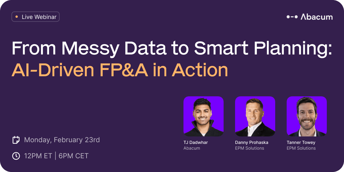 In this session, you’ll get a practical introduction to Abacum and modern EPM solutions, followed by a live demonstration of how AI can transform financial planning. We’ll walk through the end-to-end build of an OPEX model using AI-powered vendor planning, show how messy Excel files can be automatically classified and cleaned, and explore customer planning with enriched Salesforce data to improve revenue forecasting. You’ll also see a clear, side-by-side comparison between AI-driven planning and the limitations of second-generation, legacy FP&A tools—so you can understand where real efficiency gains come from.